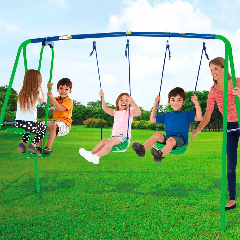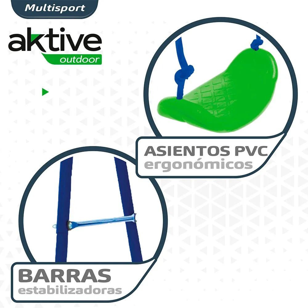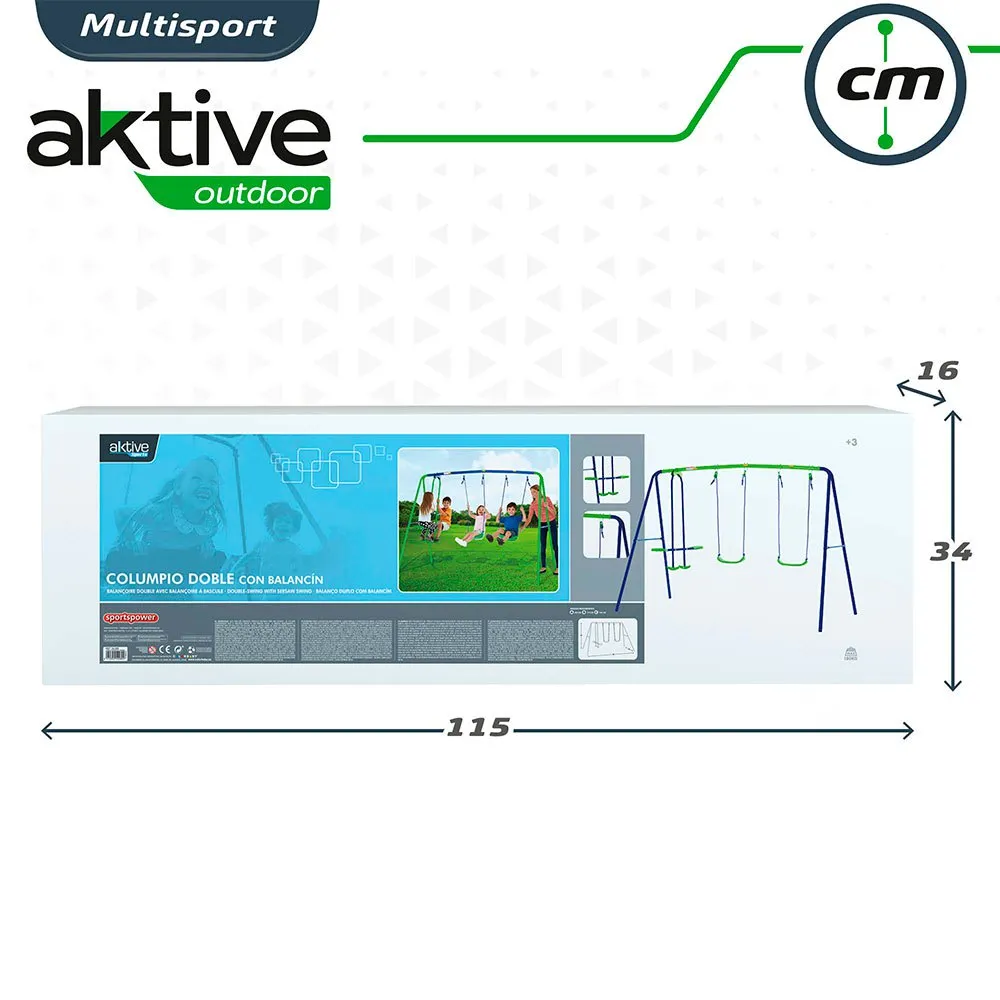 Columpio Aktive Sports con 2 asientos y 1 balancín, recomendado para 4 niños que no excedan de 180 kg en total.