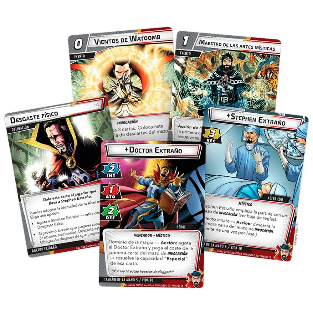 ¡un mazo completo de 40 cartas de Doctor Strange! ¡24 cartas nuevas que se pueden agregar al mazo de cualquier otro héroe! ¡Un set de archEPEEMIGO protagonizado por Malevolo Barón Mordo! Contenido 60 letras.