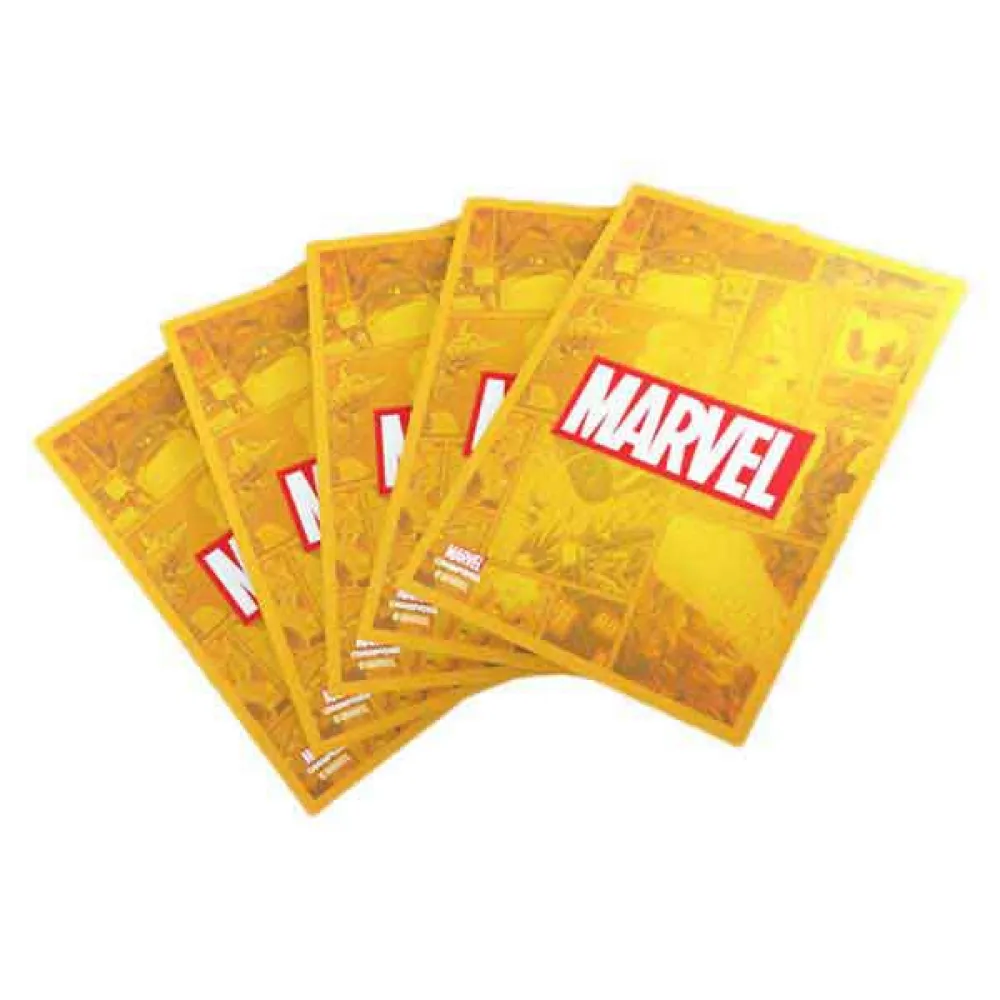 Fundas oficiales de MARVEL CHAMPIONS con ilustración y diseño de MARVEL en color naranja, están optimizadas para las cartas de MARVEL CHAMPIONS y se pueden usar con cualquier otro juego de cartas de tamaño estándar.