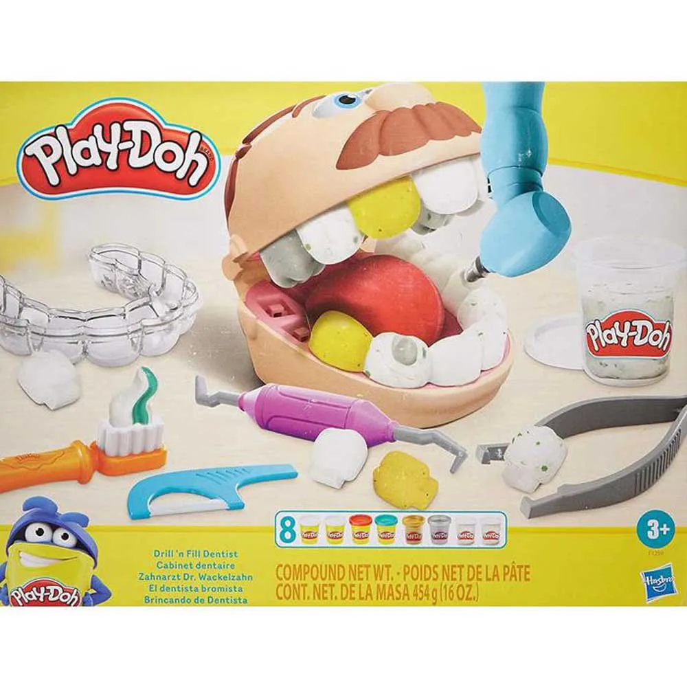 Play Doh el Dentista bromista con sus herramientas y molde para hacer los dientes.