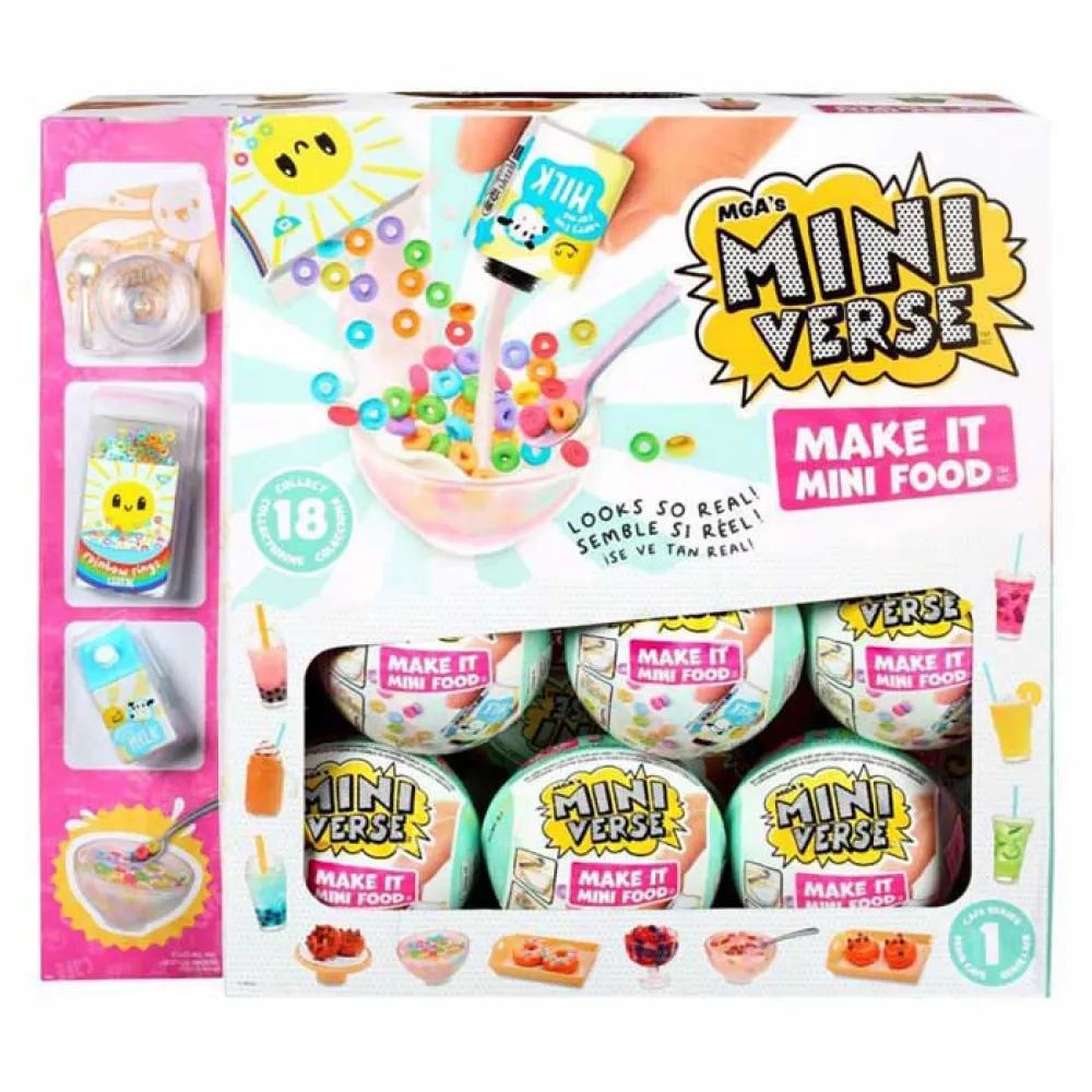 «¡Juguetes mini… ¡Grandes sorpresas! ¡Hazlo! ¡Configúralo! ¡Colecciónalos todos! Desempaqueta tus comidas favoritas ahora en forma de réplica mini.