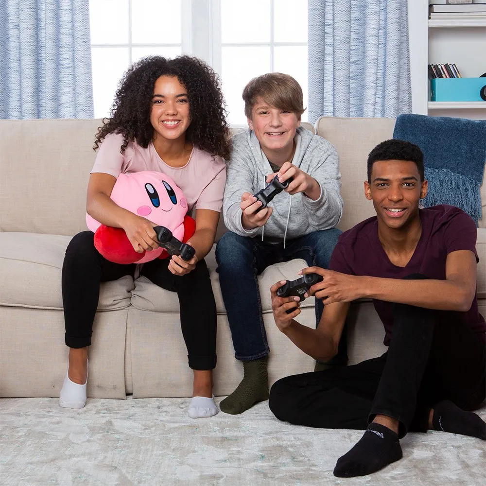 Los colores rosas conmemorativos y el logotipo del aniversario hacen de este peluche Kirby de edición limitada el complemento perfecto para los fans de este querido personaje.