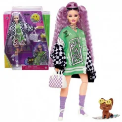 Barbie Muñeca Extra Chaqueta Con Pelo Y Botas Moradas