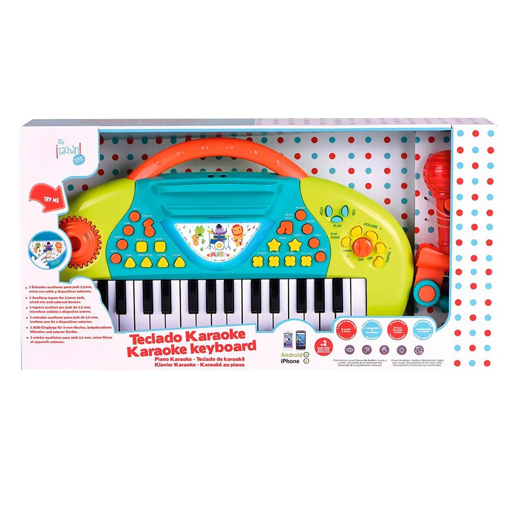 El piano interactivo con karaoke se convierte en un juguete musical para los más pequeños que les permitirá desarrollar y fomentar su capacidad auditiva y musical al mismo tiempo que estimulará su creatividad y la imaginación.