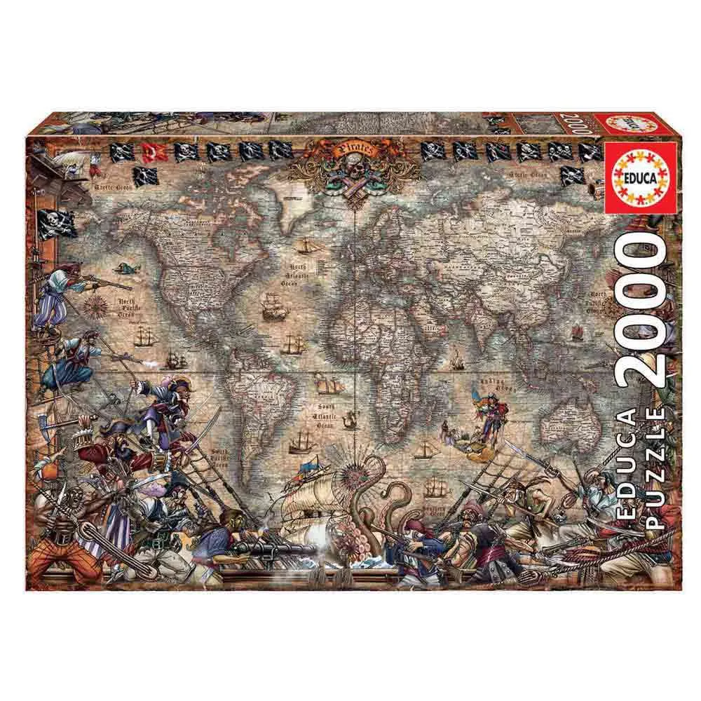 Educa Mapa de Piratas Puzzle de 2000 piezas de cartón con el que formarás una imagen de un auténtico mapa pirata del mundo entero en tonos apagados.