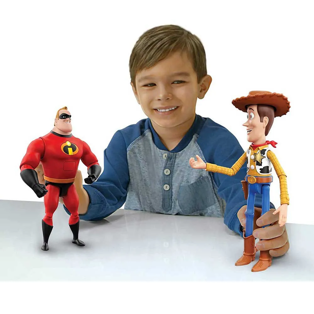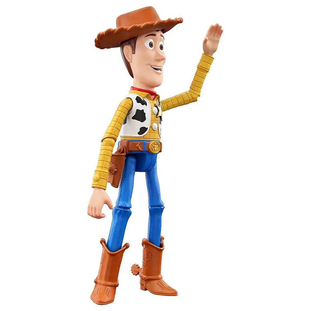 Pixar Ultimate Talker Woody Toy Story Talking Action Figure Sheriff Doll 9.2-in / 23.4-cm Tall, Posable with Cross-Movie Character Interaction, Kids Gift Ages 3 Years & Older This Woody Interactables figure not only recognizes the Toy Story gang but greets and converses with characters from across the Pixar universe! Whether he’s rounding up some adventures with his best friends from Toy Story or greeting a new encounter from a different Disney and Pixar movie, he can inspire friendly cross-movie conversation and team play! He’s got something to say to everyone – just press the button and listen. This 9.2-inch (23.4-cm) tall action figure is highly posable, to recreate signature moves of everyone’s favorite sheriff or star in a multi-character display. Colors and decorations may vary
